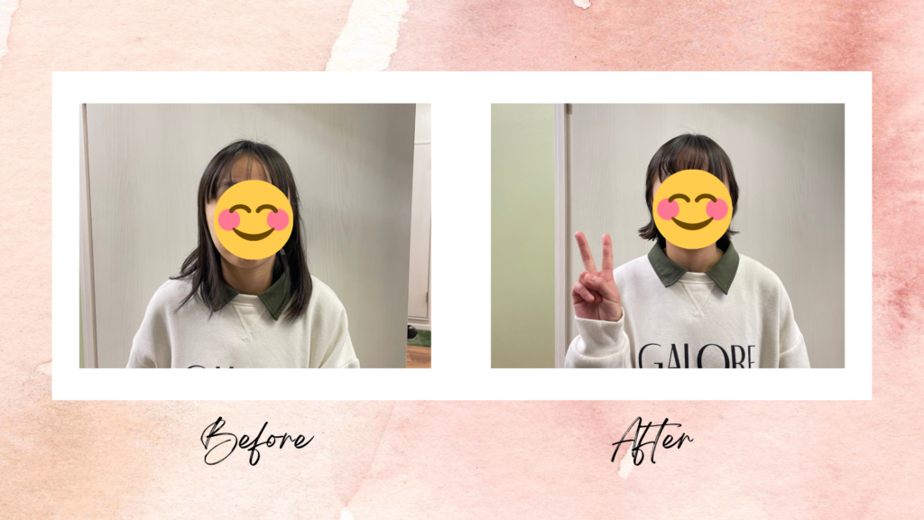 Aさん:前回は皆短く切る程度でしたが、今回はバッサリ行く人が多かった印象です。時間はかかってしまいましたが満足してもらえたら嬉しいです。